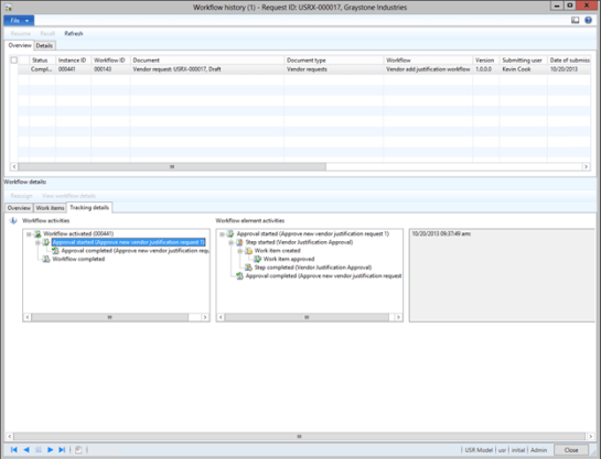 Once the new vendor request has been submitted, the workflow that you configured for the Vendor add justification will start notifying the necessary people that there are requests that need to be approved.
