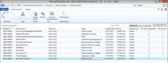 - To sell all of the new vendor requests, click on the Vendor Requests menu item within the Vendor requests folder of the Common group of the Procurement and sourcing area page.