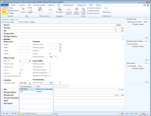Now open up your Released product details and within the Engineer group you can select your new Calculation Group.