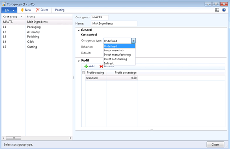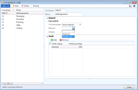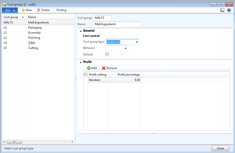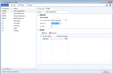 - Repeat this process for all of the other Cost groups that you want to use, and then click the Close button to finish the setup.
