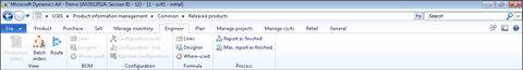 - Open up the Released products form from within the Common group of the Product information management area page.