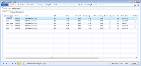 After the cost roll up has been performed, you will see a list of all of the pending prices that have been calculated.