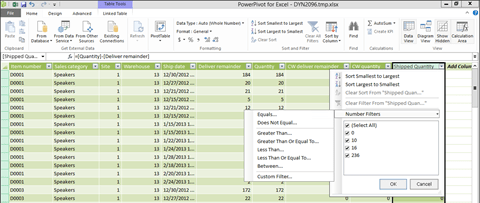 Within the PowerPivot Data Model editor, you can also filter the data that is returned to Excel through the filtering option.