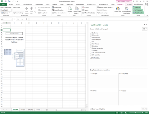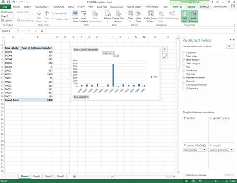To use PivotTables to analyze information from within Dynamics AX, follow these steps: