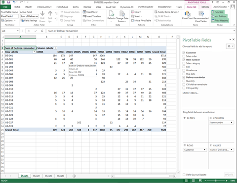 4. Excel will create a new worksheet for you and also show all of the columns from the source worksheet for reporting.