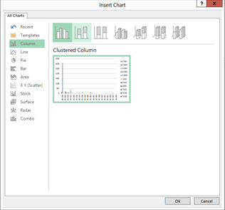 You can select the style of chart that you want to add to the worksheet from the Chart Gallery, and click the OK button to add it to the worksheet.