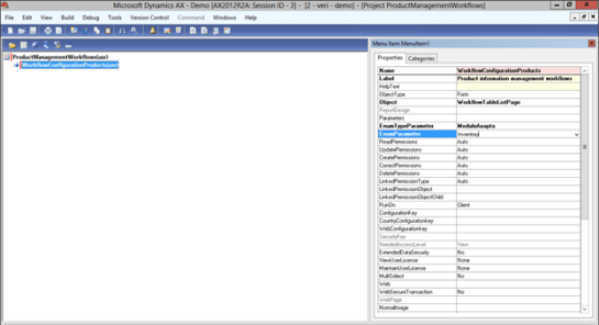 - Then change the EnumTypeParameter to ModuleAxapta and the EnumParameter to Inventory.