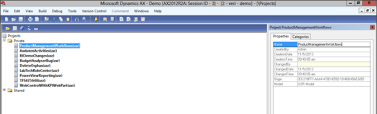 - This will create a new project for you. Change the project name to something a little more understandable (ProductManagementworkflows) either in the Properties window, or direct in the Projects explorer tree.