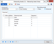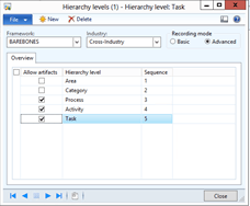Before we start defining the groups and elements for our business process frameworks, we need to define the different process level. To do this we will create Hierarchy Levels within the task recorder.