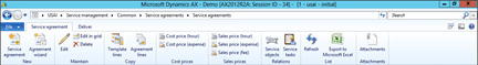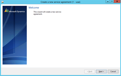 - When the Service Agreements list page opens up, click on the Agreement wizard button within the New group of the Service agreement ribbon bar.