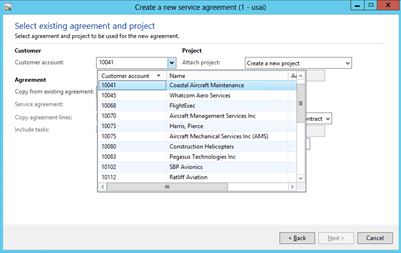 - Select the Customer account that you would like the service agreement to be associated with.