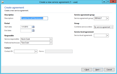 - When you have configures the defaults for the Service Agreement click the Next button to continue on.