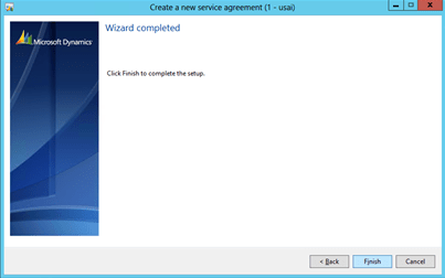 - When you reach the confirmation page, click the Finish button to have the system create your Service Agreement.