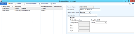 The Service Management area allows you to track what the Service Orders and Service Agreements are related to through what a called Service Objects. A Service Object could be something that is tracked as in inventoried item, or it could just be a reference to something that is being serviced.