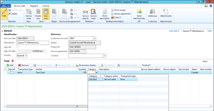 - Select the Category for the line from the drop down to specify the type of labor that is being assigned to the Service Order.