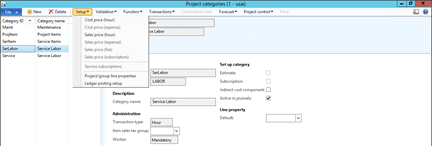 Note: If you drill into the Project Categories then make sure that the Active in journals check box is marked.