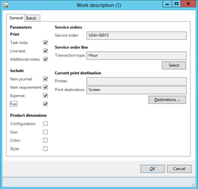 When the print dialog is displayed, select the options that you want to include in the Work Instructions and then click the OK button.