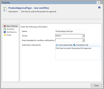 - This will send you to the workflow list page, which will be blank right now because there are no workflows defined for the Product Management category.