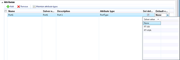 Tip: In these examples, we create the first entry as None. This allows you to have a null value that represents that the user has not selected anything yet. - Repeat the last step for every one of the valid configurations that you allow for the Attribute type.
