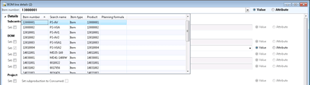 - In the BOM line details form, enter in the Item number that you want to use in the BOM line.