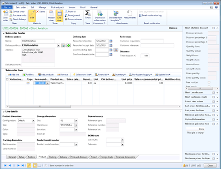 To see this in action, you can create a new sales order and create a line on the order for the configured product that you just created. Open up the detail tabs at the bottom, and select the Products tab. Notice that there is no Sub-BOM value at this point.