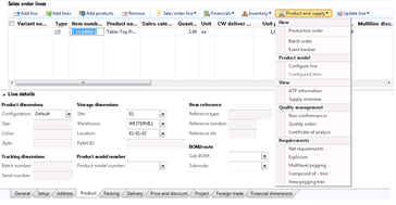 From the Product and supply drop down menu in the Sales order lines panel, select the Configure line menu item.