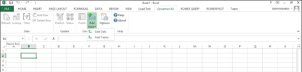 - Open up Excel, and from the Dynamics AX ribbon bar, click on the Add Data button and select the Add Tables option.