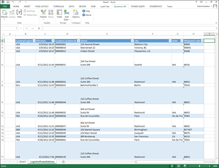 - Then click on the Refresh button in the Dynamics AX ribbon bar to query all of the data from Dynamics AX.