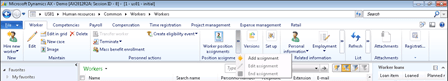 - From the Position Assignment group on the Worker ribbon bar, select the Add Assignment button.